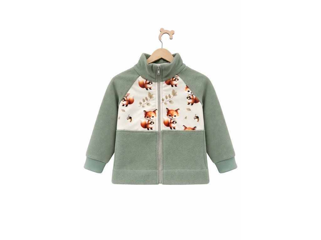 Dětská rostoucí fleecová mikina na zip, oliva, vzor liška