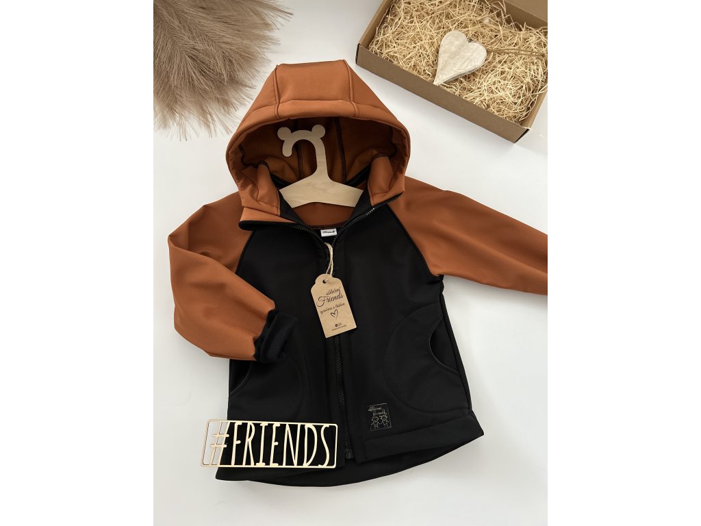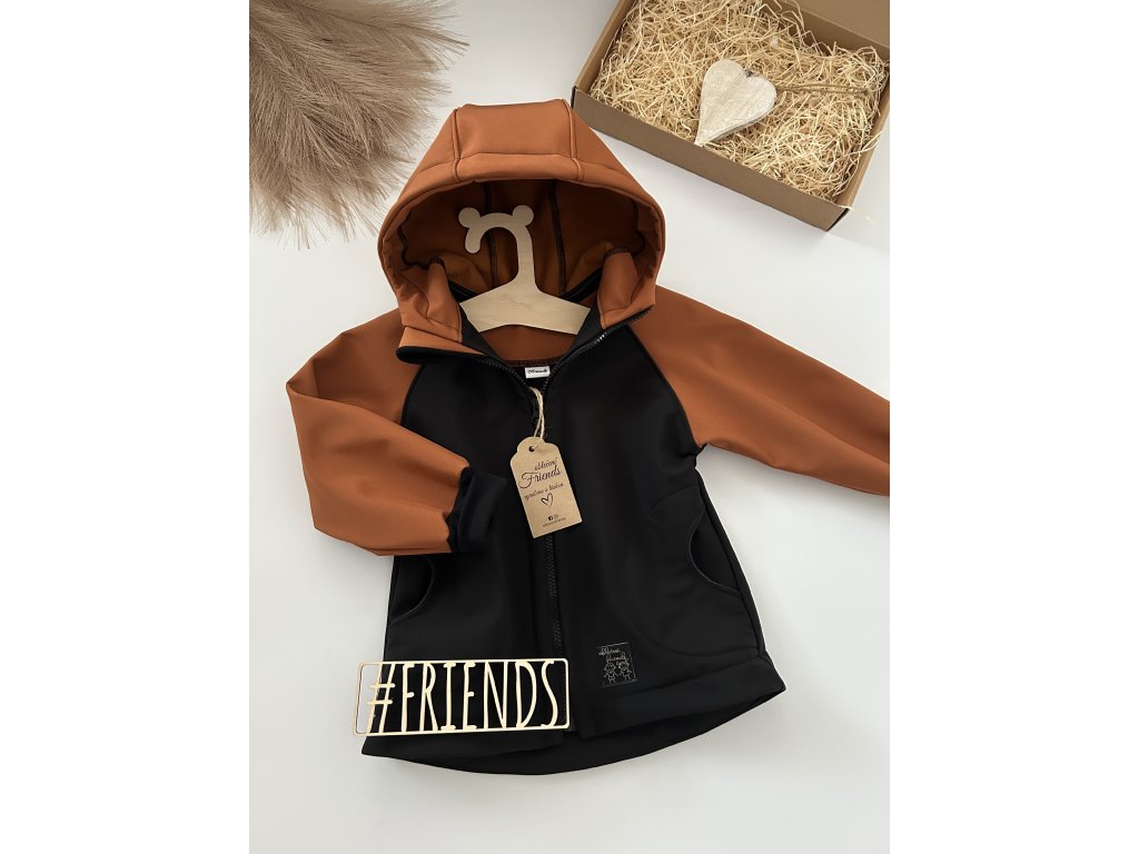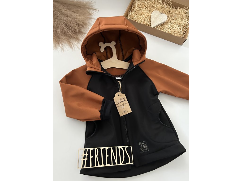 Dětská rostoucí softshellová bunda, jaro, podzim, léto, černá a skořice