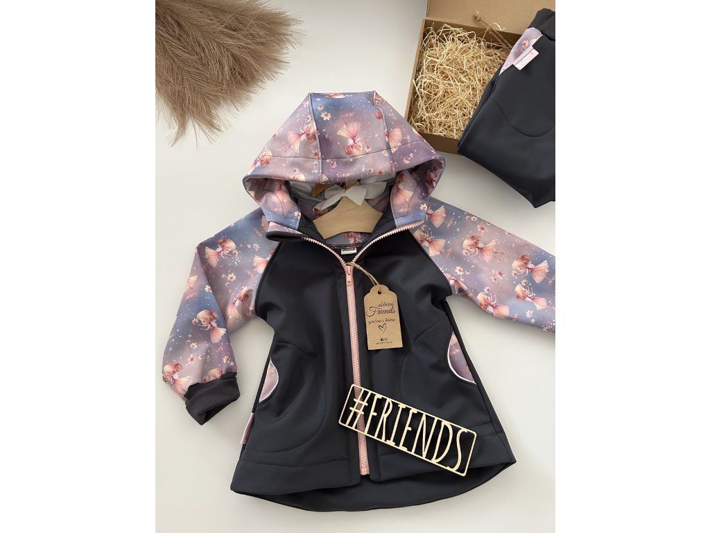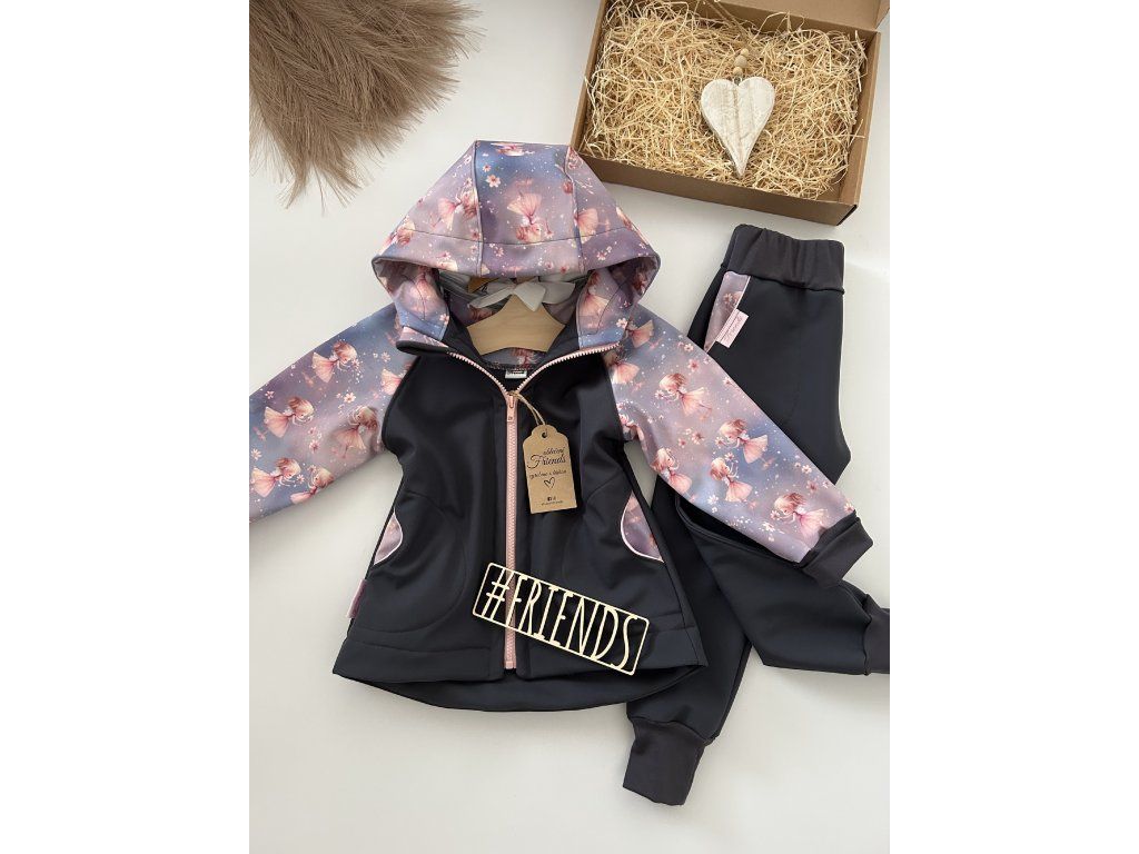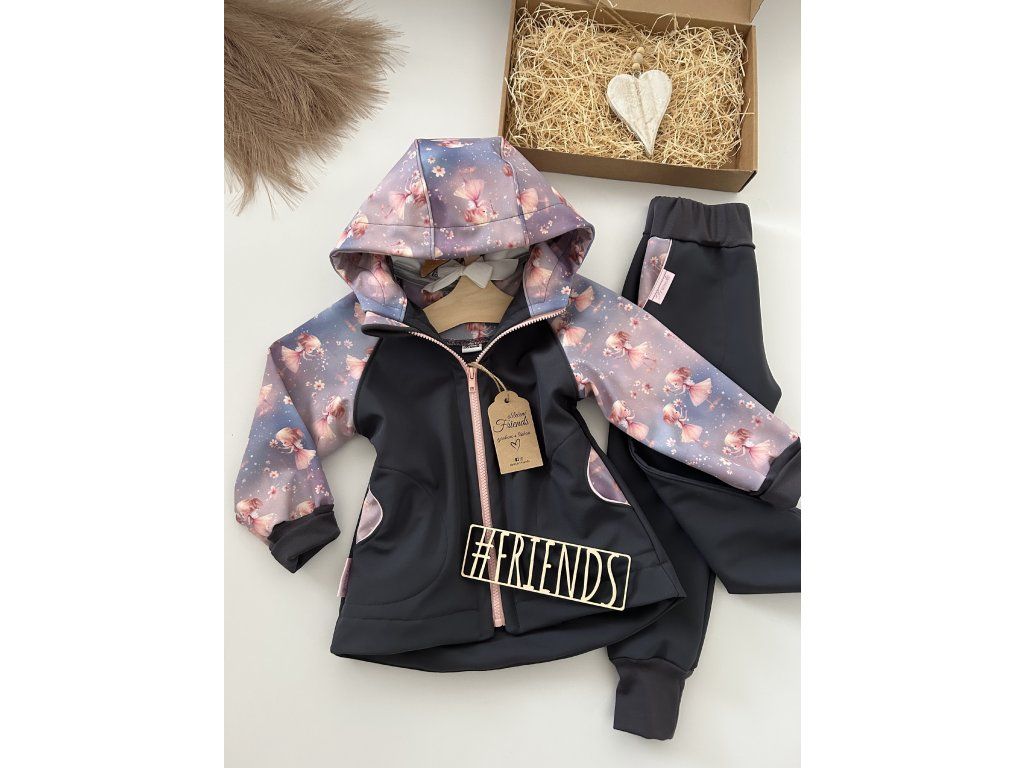 Dětská rostoucí softshellová souprava, šedá, vzor víla ,