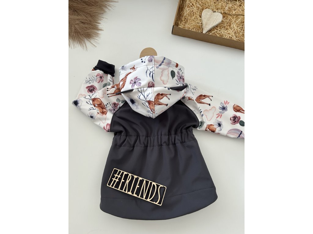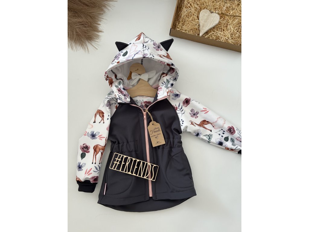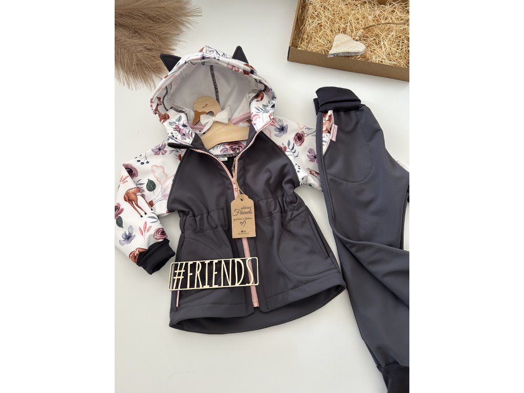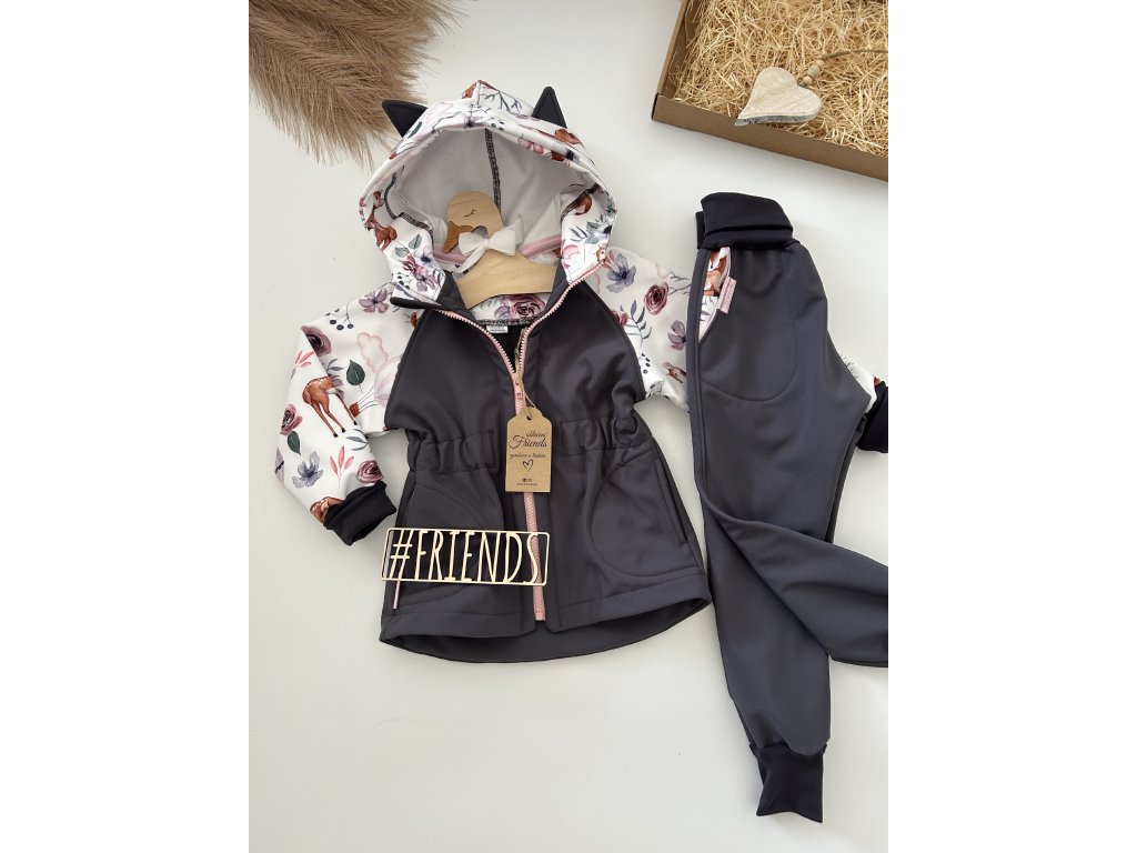 Dětská rostoucí softshellová souprava, jaro, podzim, léto, šedá vzor srnky