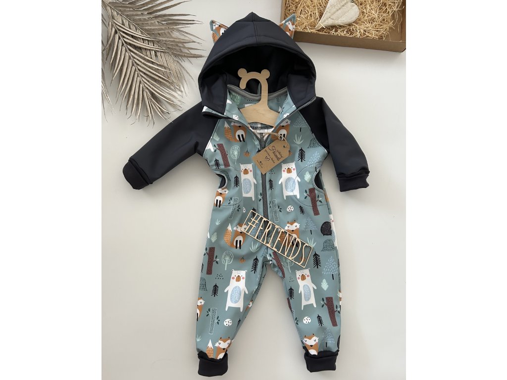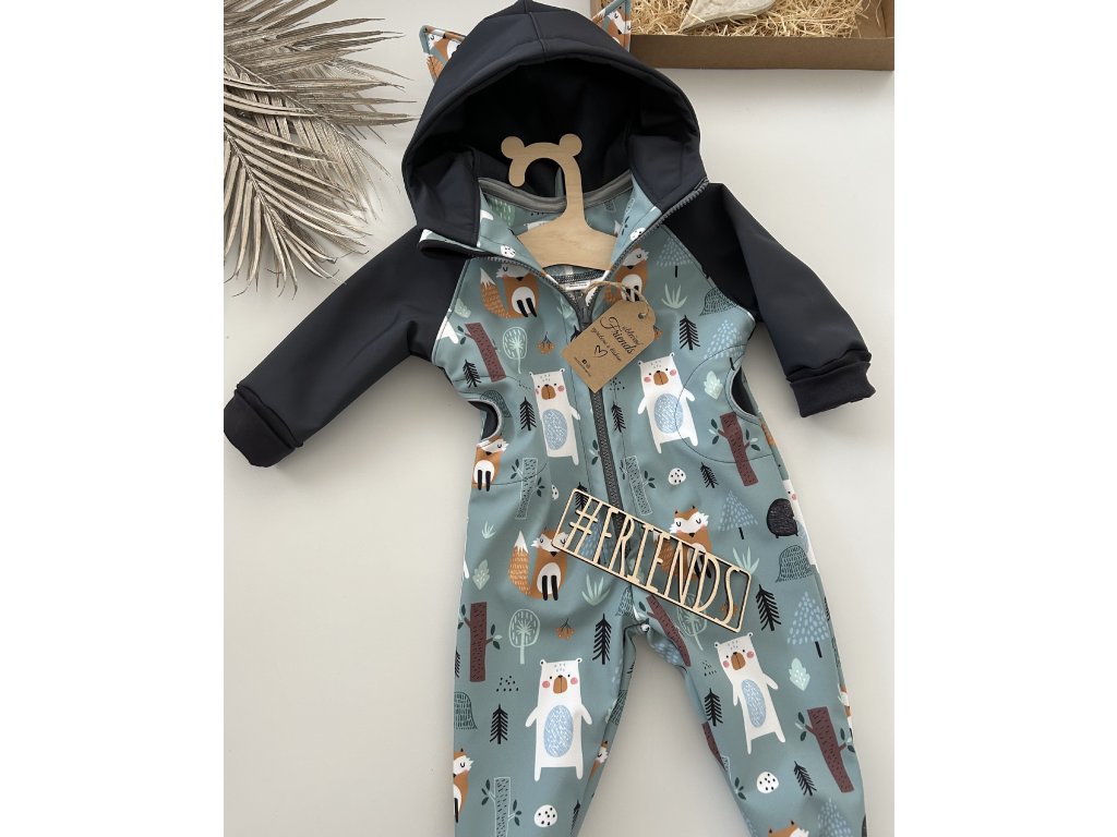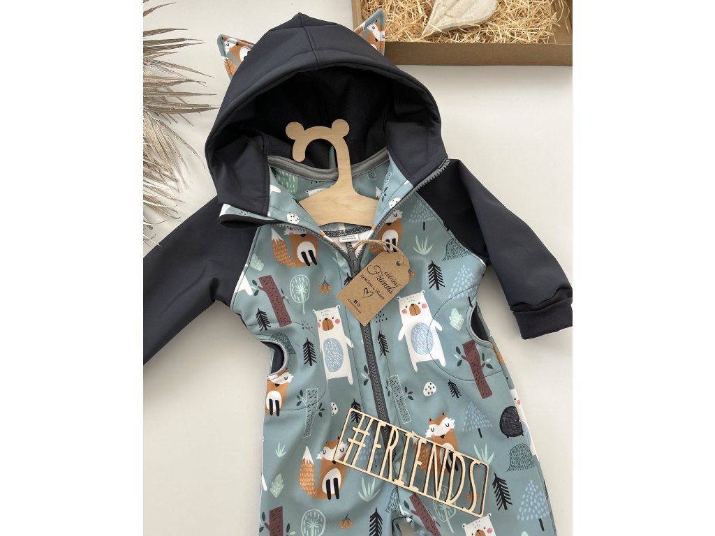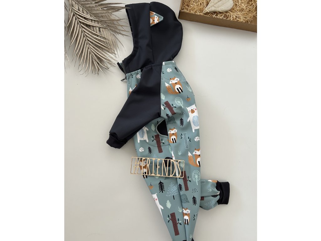 Dětský rostoucí softshellový overal, vzor zvířátka