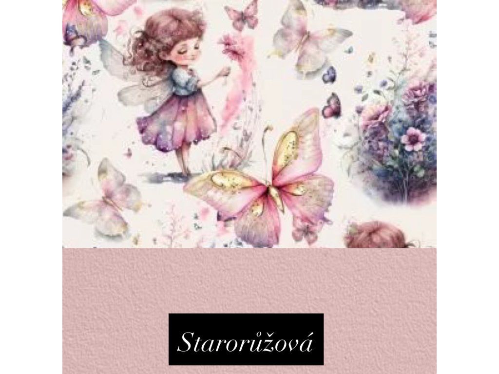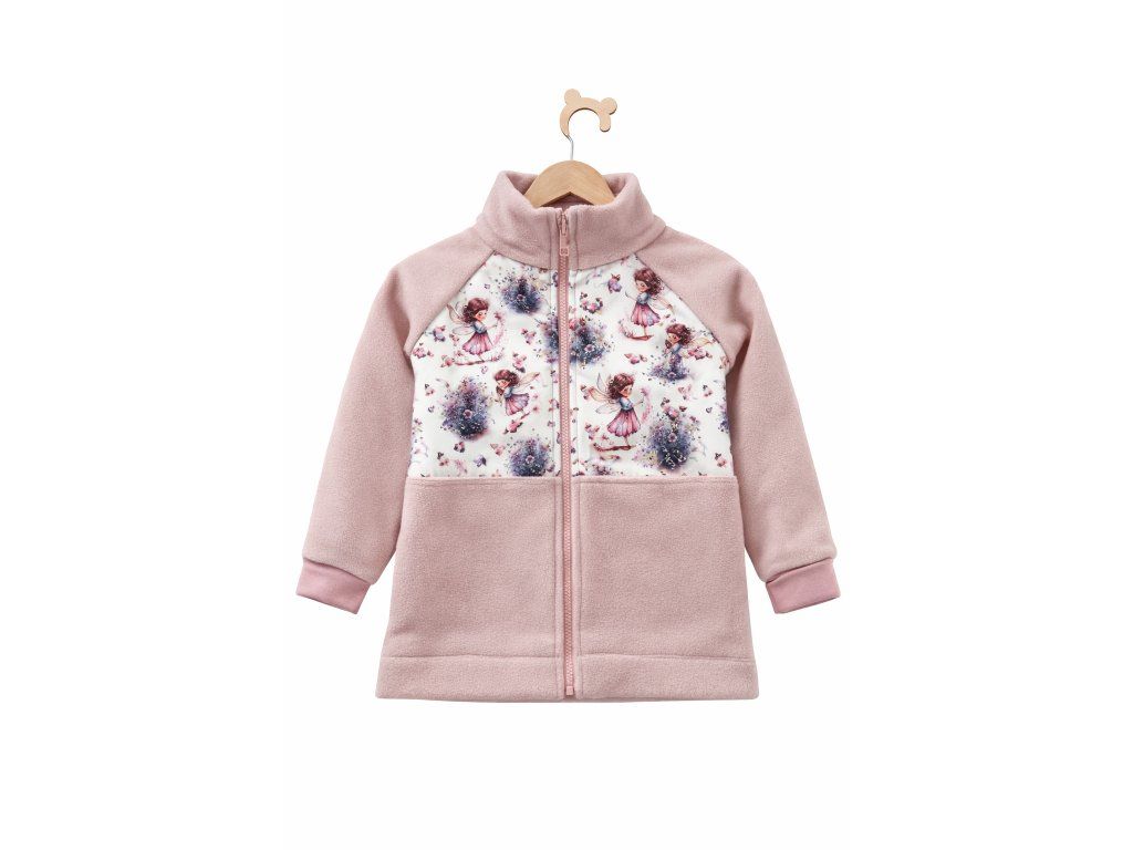 Rostoucí fleecová mikina na zip, starorůžová vzor víla s motýlky