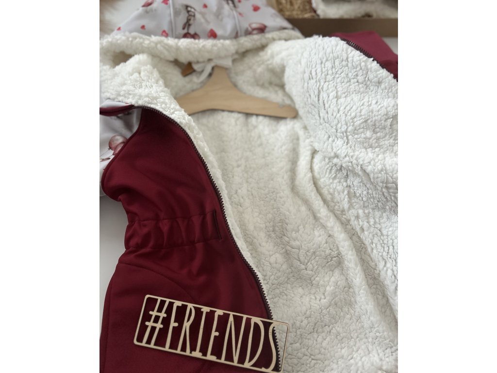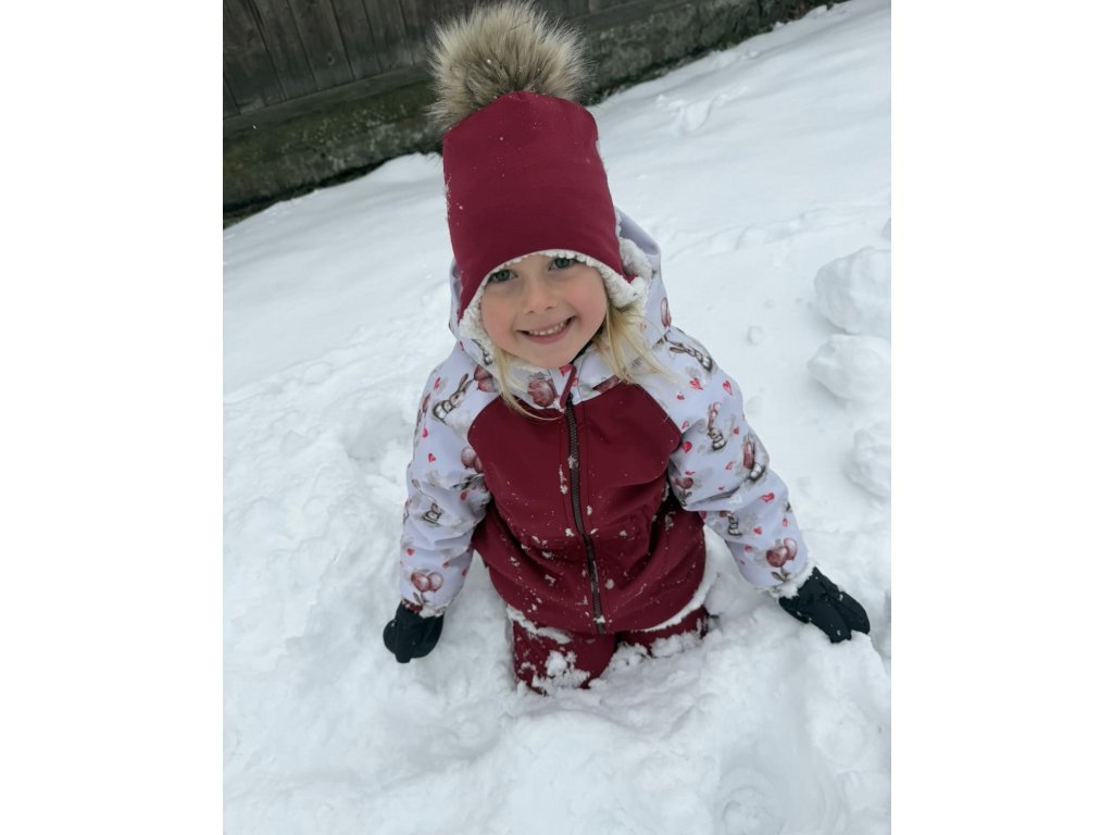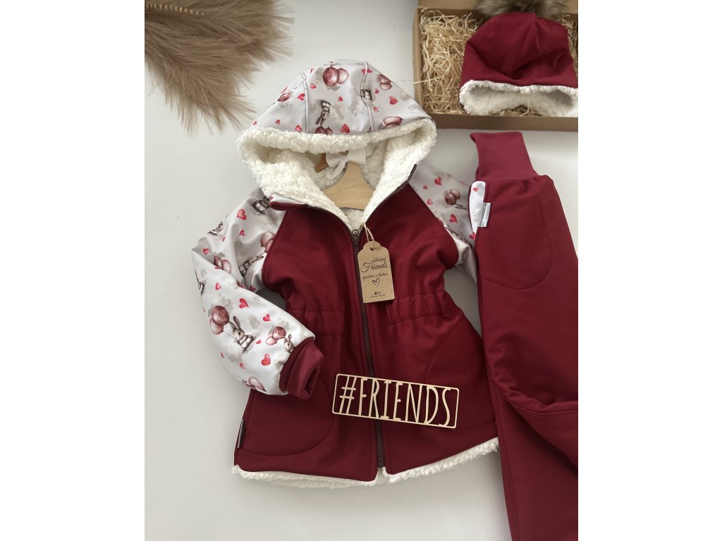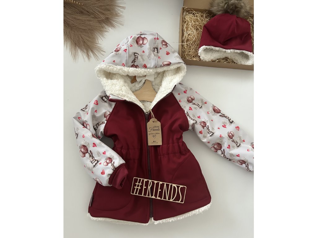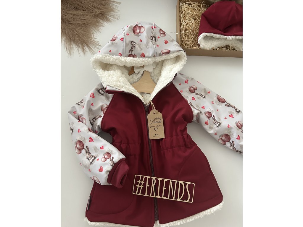 Dětská softshellová bunda s beránkem, zimní, bordó, vzor zajíček, holka