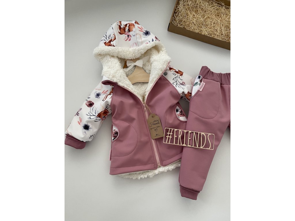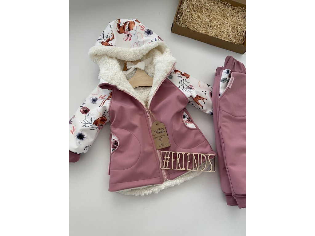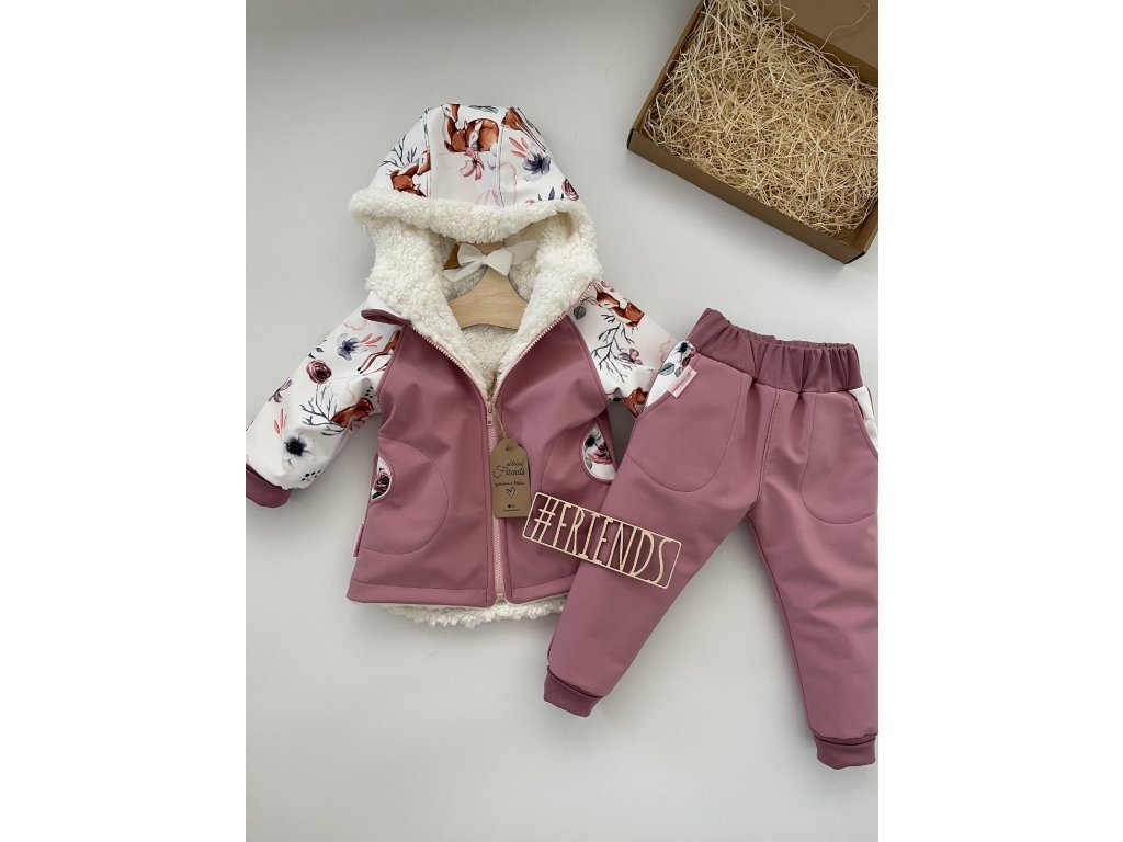 Dětská softshellová bunda s beránkem, zimní, starorůžová, holka