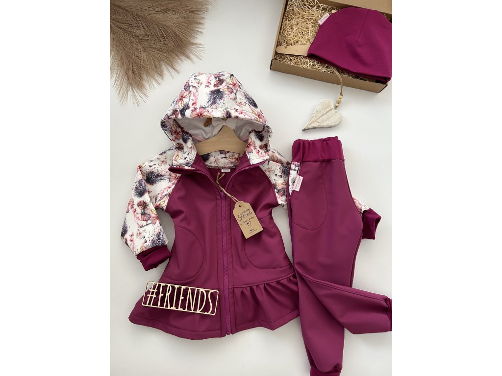 Bunda je vyrobená z kvalitního softshellu s jemným chloupkem z rubu, který zahřeje, ale zároveň dýchá. Praktické rostoucí náplety zajistí, že bunda poroste spolu s vaší holčičkou a vydrží jí déle než klasické oblečení.