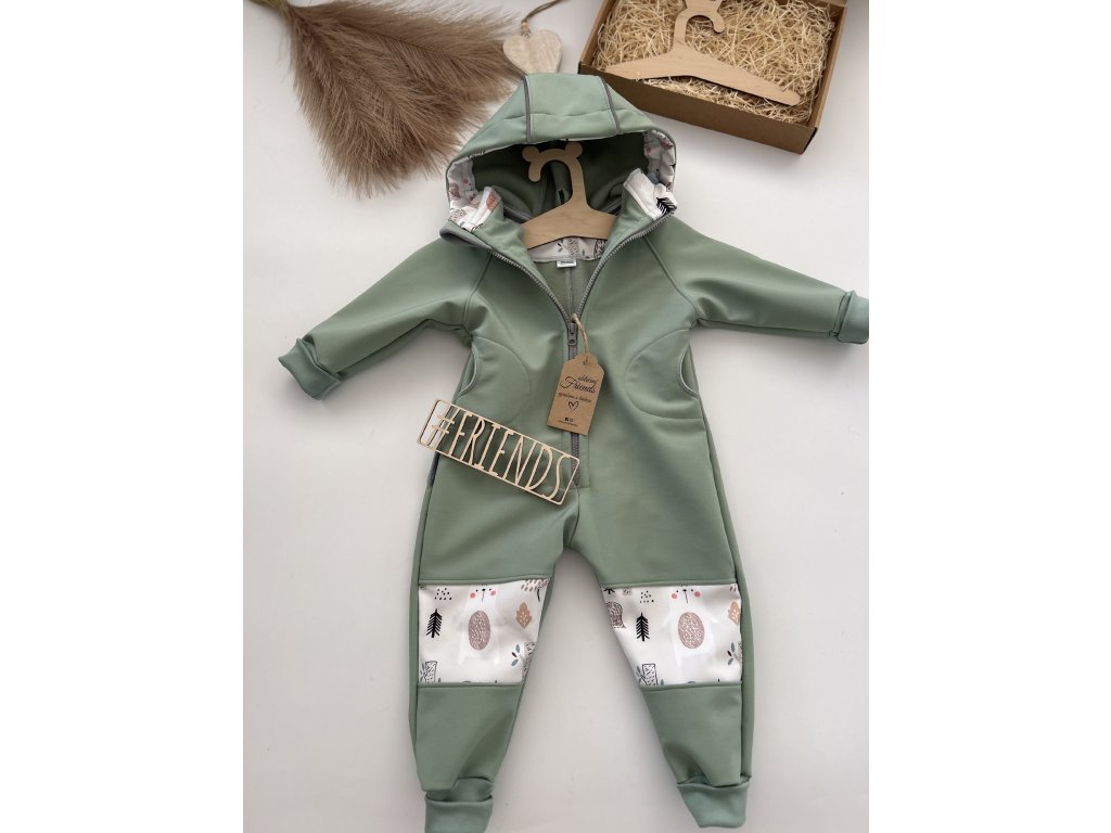 Rostoucí softshellový overal z odolného materiálu, který se snadno přizpůsobí velikosti dítěte. Z rubu má jemný hřejivý chloupek, takže příjemně zahřeje v chladnějším počasí. Skvělá volba na jaro i podzim – odolá větru, dešti i dětským dobrodružstvím venku.