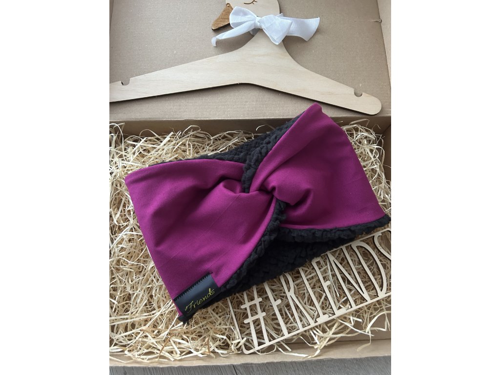Překřížená čelenka podšitá teplým beránkem, zahřeje a chrání před chladem